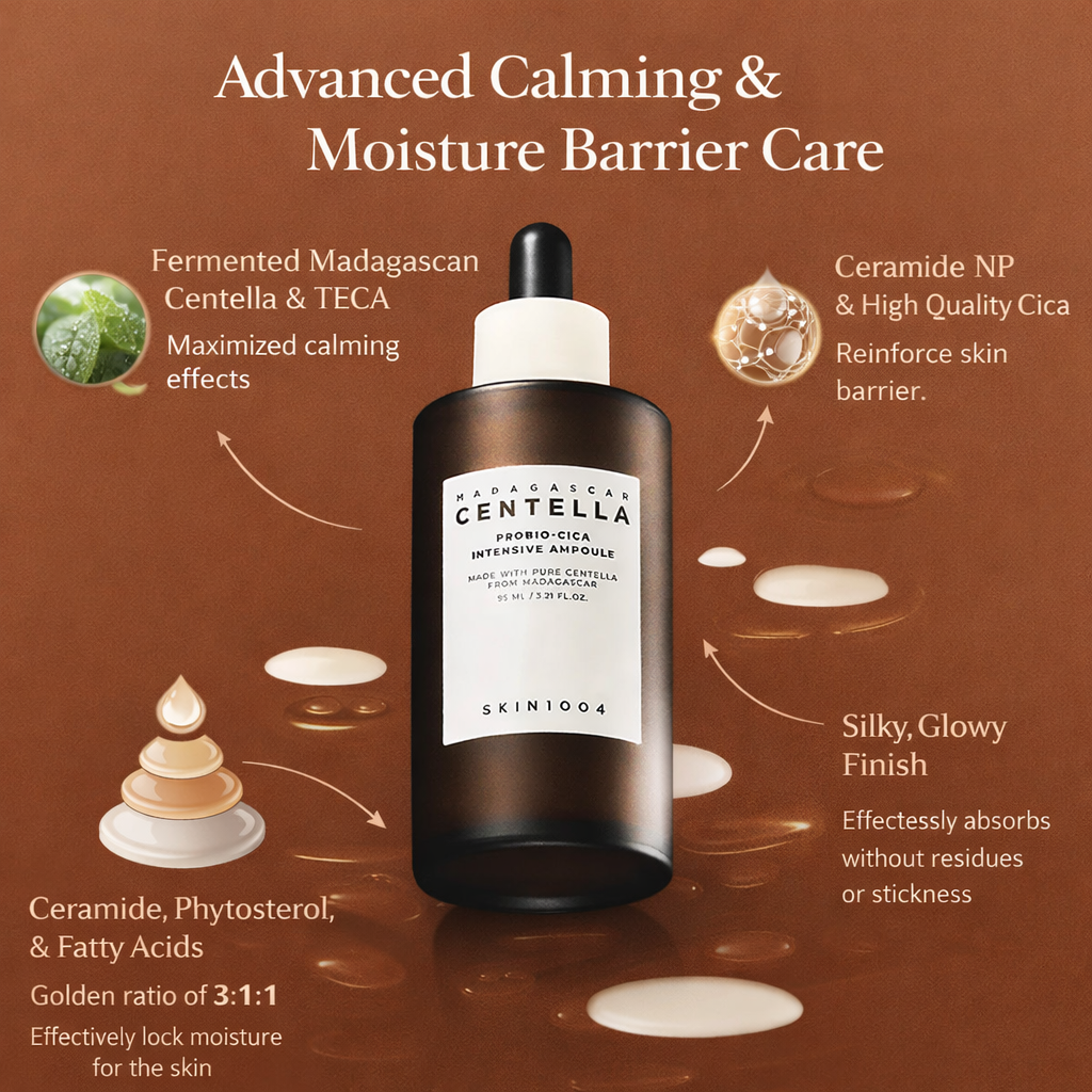 Layer this ampoule after a calming toner like Anua Heartleaf 77% Soothing Toner for a double-hit of inflammation control. Bonus: It also pairs beautifully under the SKIN1004 Probio-Cica Enrich Cream as a calming nighttime barrier duo.